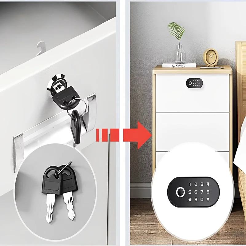 Upgrade your cabinet security with this Smart Cabinet Lock designed for convenience and safety. It supports Passwword, NFC Card, and PIN unlocking, giving you quick and flexible access without traditional keys.The low battery alarm keeps you notified, and the lock can deliver up to 1000 unlocks using just 3 alkaline batteries.Ideal for home cabinets, office drawers, lockers, and storage units, providing a simple and secure access solution.