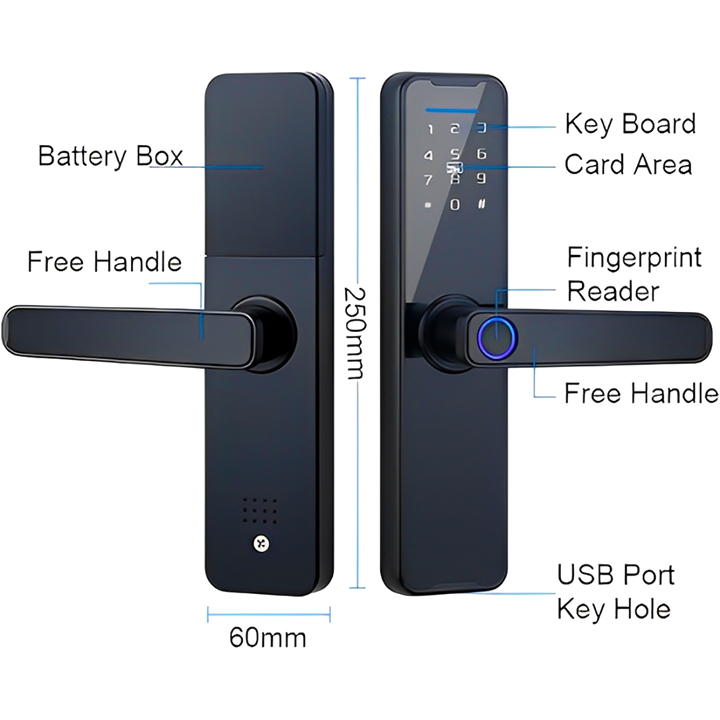 With this smart door lock, you can control your door remotely using the app from anywhere in the world. It offers multiple unlocking methods, including fingerprint, password, NFC card, app, and traditional keys, providing ultimate convenience. A built-in doorbell is attached to the lock, and if any unauthorized person tries to access it, an alarm will ring instantly, ensuring your safety. You’ll also receive real-time notifications on how many times the door has been opened, keeping you informed at all times. Plus, features like guest OTP, dual verification, and durable zinc alloy construction make it the perfect blend of security and functionality.