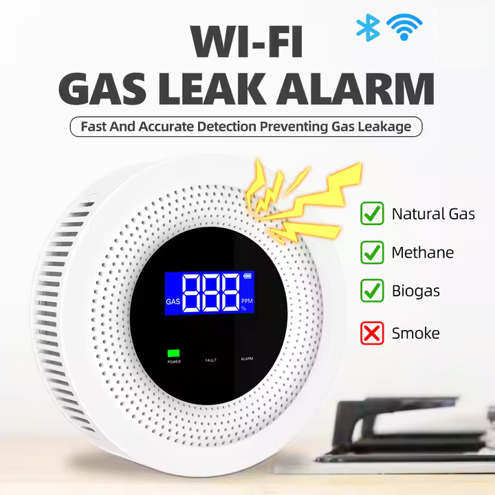Keep your family safe with the Empire Smart Gas Detector. It quickly detects Natural Gas, Methane, and Biogas leaks, alerting you with a loud alarm and flashing red light. The easy-to-read LED display and smart app notifications ensure you’re always aware—even when you’re not home. With Wi-Fi and Bluetooth connectivity, it connects to the SmartLife / Tuya app for real-time monitoring. Simple to install and designed with a sleek, fireproof finish, it’s a smart and stylish way to protect your loved ones, 24/7.