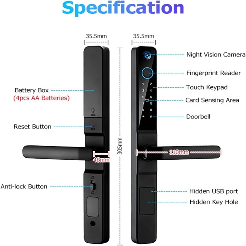 This smart door lock is designed for ultimate convenience and security, whether for your office, showroom, or home. Perfectly compatible with Thai doors, sliding doors, and more, it offers multiple unlocking methods including Face Unlock, fingerprint, password, NFC card, mobile app, and traditional keys. You can control your door remotely from anywhere in the world, while the built-in doorbell and instant alarm ensure maximum safety against unauthorized access. Real-time notifications keep you updated on every entry, and features like guest OTP, dual verification, and a strong zinc alloy body make it a reliable choice for modern living and business spaces.